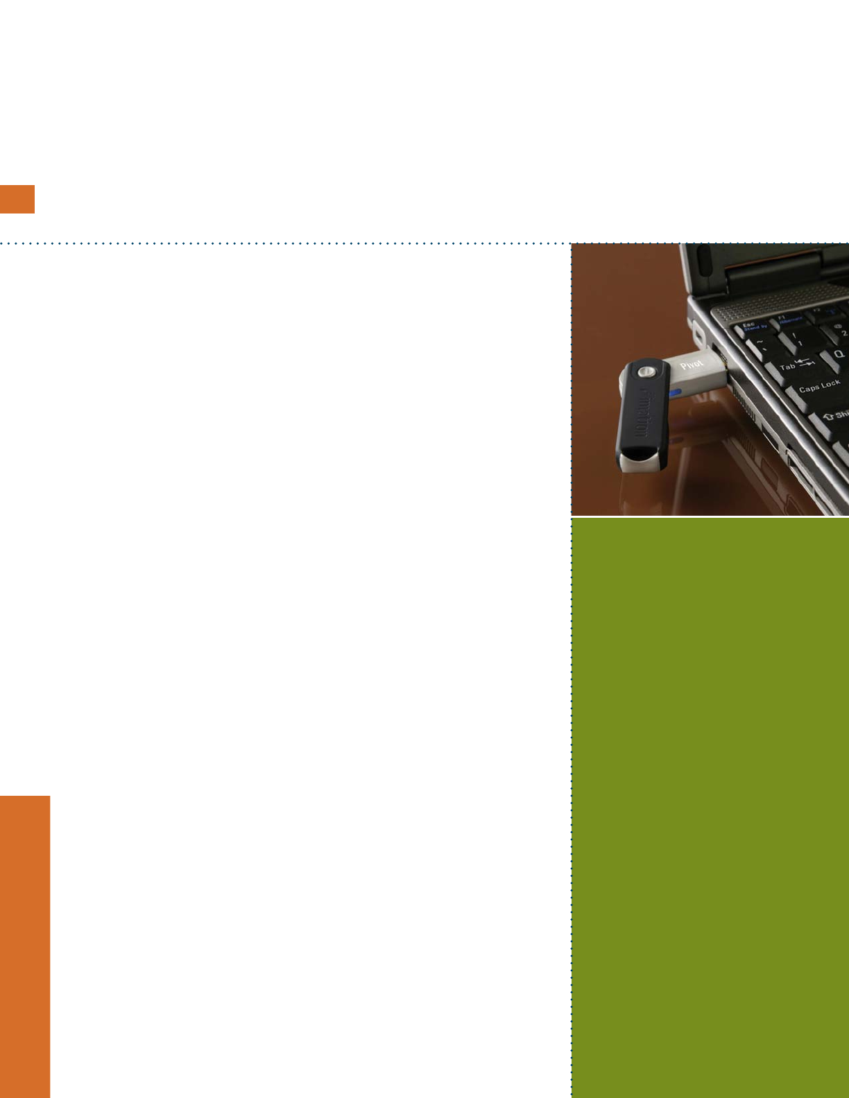 private areas of the flash drive, Pivot Flash Drive users have control over